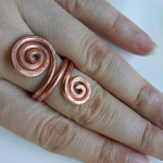 Desi nu cautam si nici nu speram sa gasesc azi asa ceva, la unul dintre standuri, am zarit niste obiecte din cupru si m-am repezit sa probez un inel. Instinctiv, l-am pus pe inelarul mainii stangi. Si nu a mai vrut sa iasa. Cand mi s-a explicat ce proprietati are cuprul de buna calitate (atentie mare ca in comert exista mai multe tipuri care pot face bine sau rau, deci trebuie avut grija ce si de unde cumparam !) l-am cumparat imediat. Cuprul protejeaza impotriva atacurilor energetice si a energiilor malefice. Iar pe mana stanga se aseaza intotdeauna astfel de protectii ca sa fim feriti de lucruri care nu ne sunt benefice. Stia deci inelul unde s-a asezat. Si mai are si motiv de spirala. 🙂