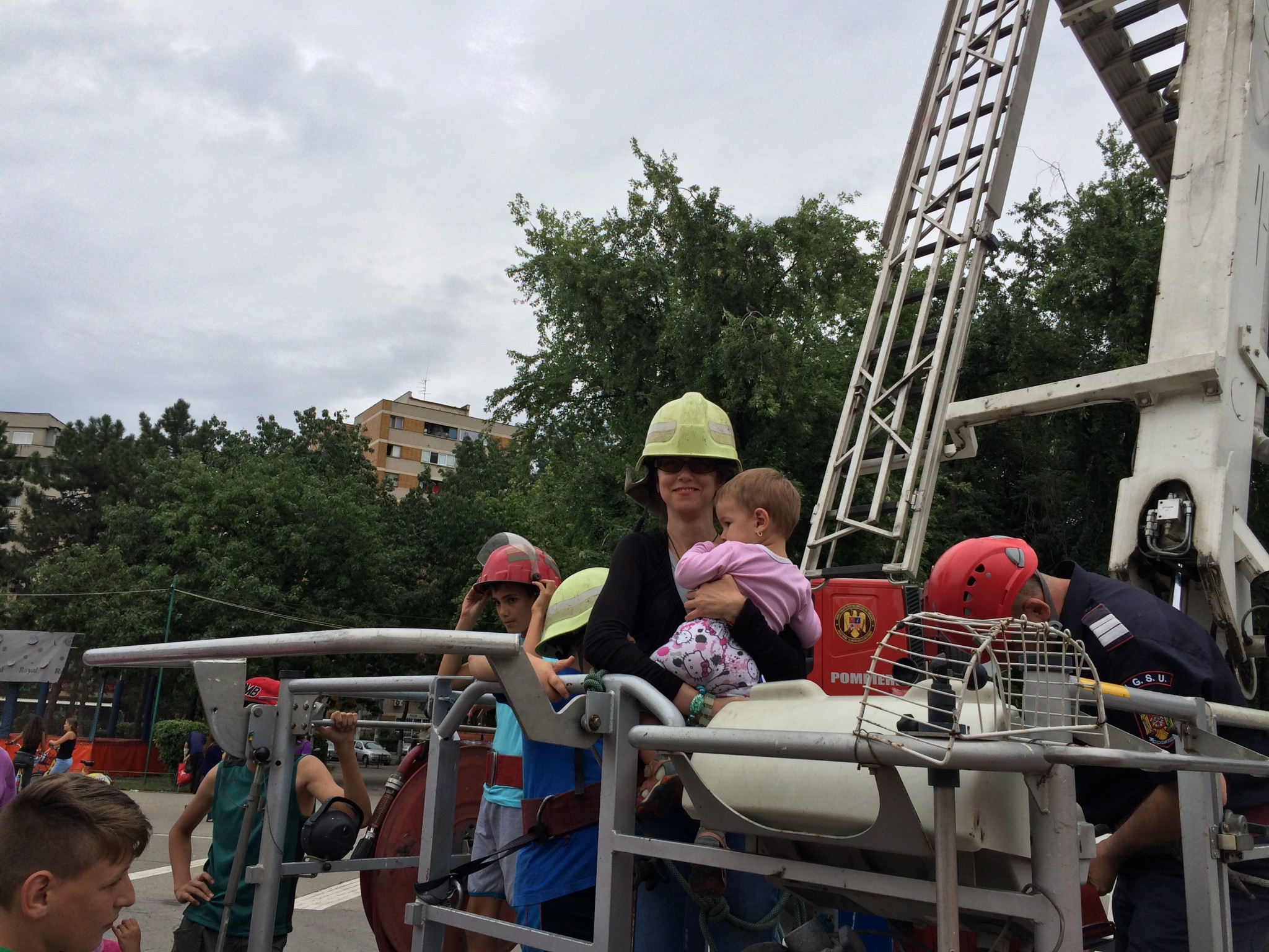 Cand colo, am avut verde la traznai. Cred ca si pompierul de serviciu o daduse in mintea copiilor din moment de m-a lasat sa urc cu fetita in brate. Norocul meu a fost ca era un copil linistit care nu a zbierat dupa mama decat o singura data, apoi s-a linistit si cred ca i-a placut pana la urma experienta. Daca mi s-ar fi smucit din brate, nu vreau sa ma gandesc la urmari. Halal adulti responsabili! Data viitoare sper sa dau dovada de mai mult rationament, mai ales cu copiii altora.